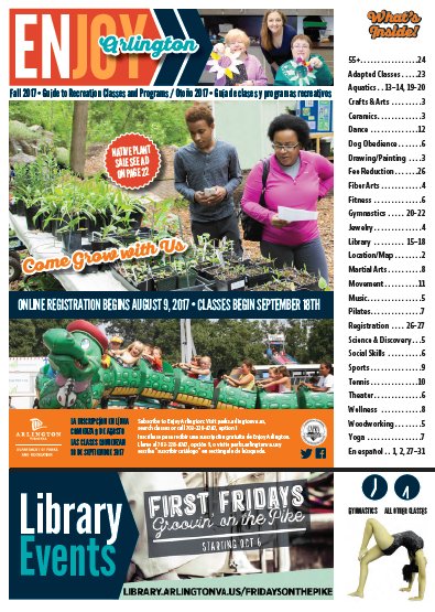 Classes - arl va parks & rec, View outdoor classes & register. view enjoy arlington fall catalog. download registration form . registration options. your best chance to get into a class is to register online early the first day as soon as registration opens. fall enjoy arlington registration. mail-in. processing begins 8/12 at 8 a.m..